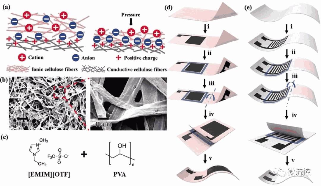 离电子传感纸原理、结构、材料及制备流程