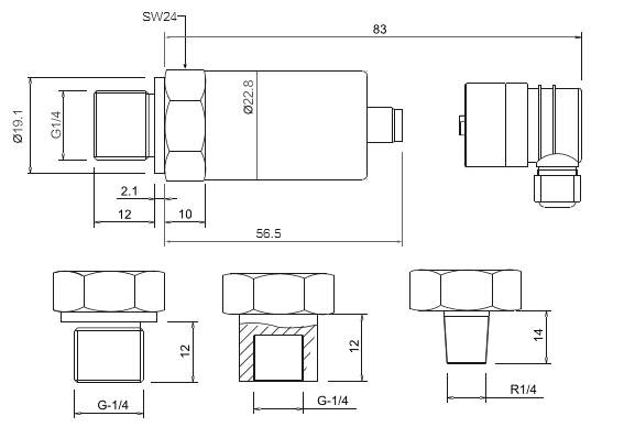 M20×1.5, M12×1, M10×1 ,1/4NPT, G1/2, G1/4 or as custom 或客户定制  |